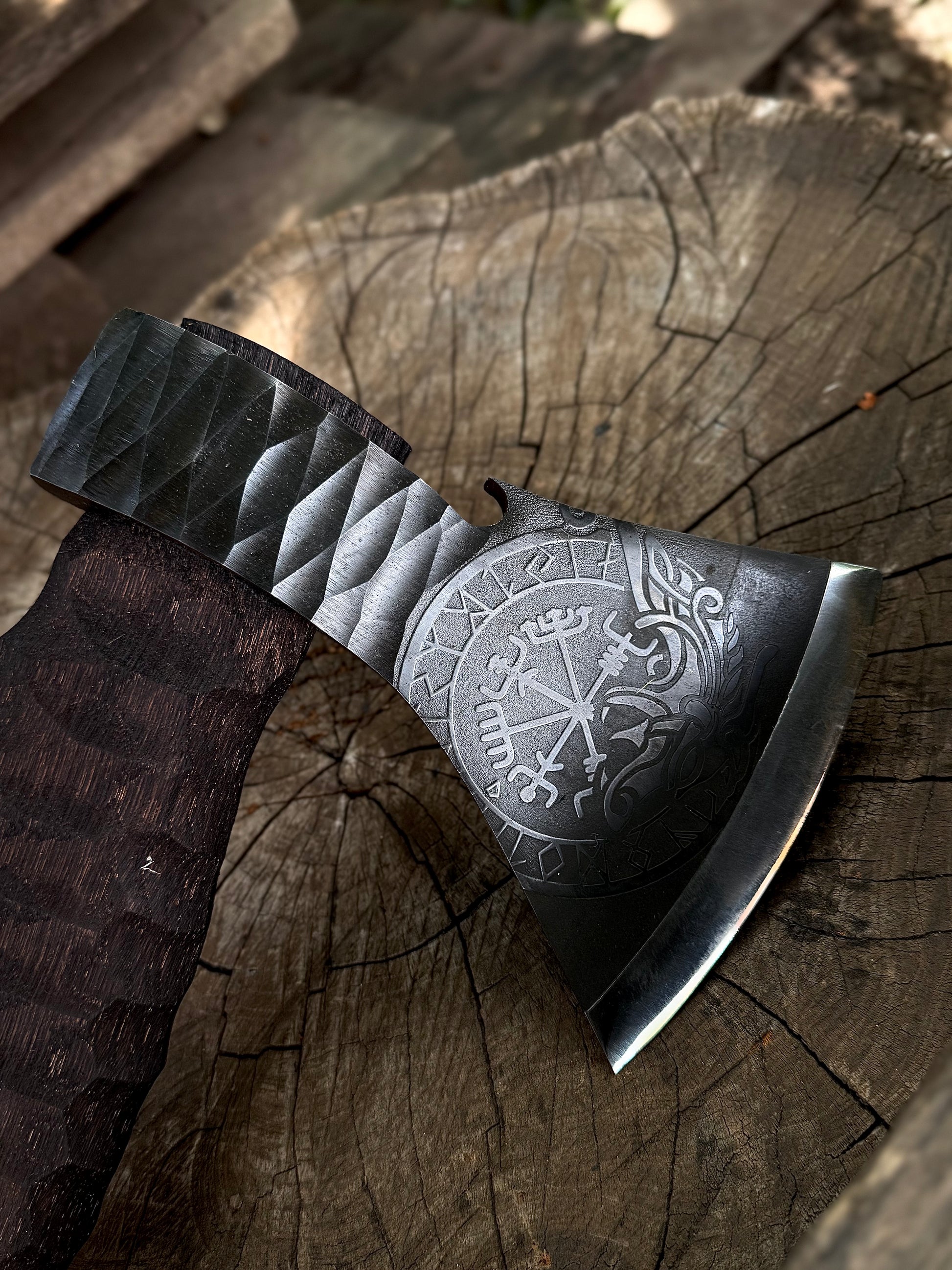 Carry the spirit of the ancient North with the Viking Axe Vegvisir, a hand-forged masterpiece made of durable U8GA high-carbon steel. Named after the legendary Nordic compass, Vegvisir is a symbol of guidance, strength, and protection.