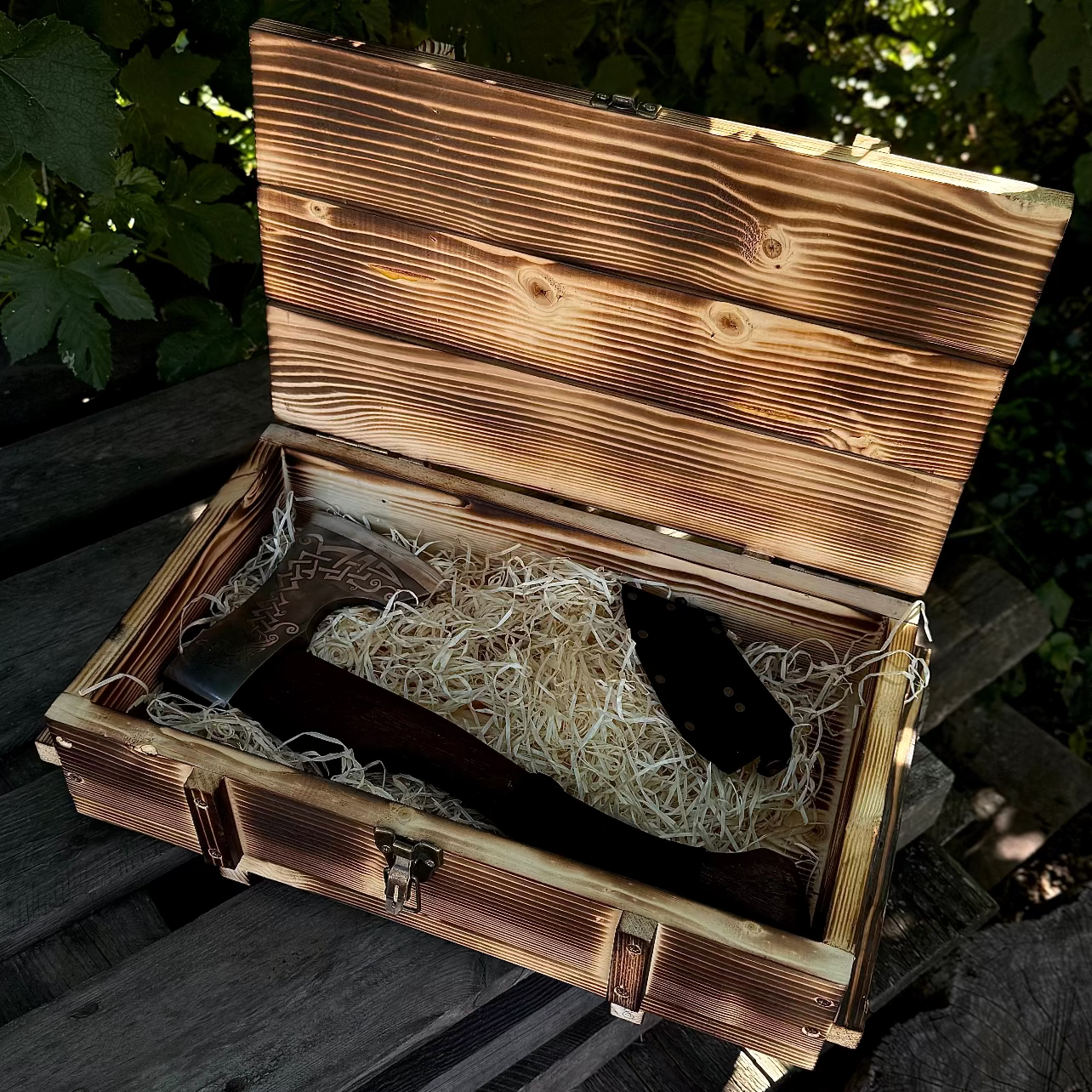 Bring history and power to life with this handmade engraved axe. Decorated with authentic rune engravings, it carries the spirit of Scandinavian and Slavic traditions, while remaining a fully functional tool.