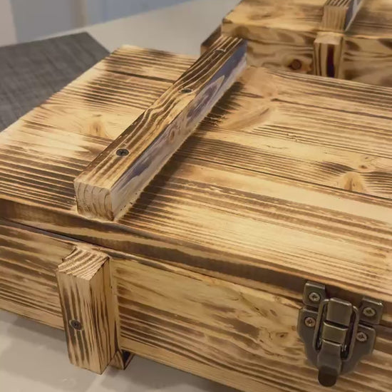 Varangard Pine Axe Gift & Transport Box — Torch-Burnished Finish, Riveted Metal Latch